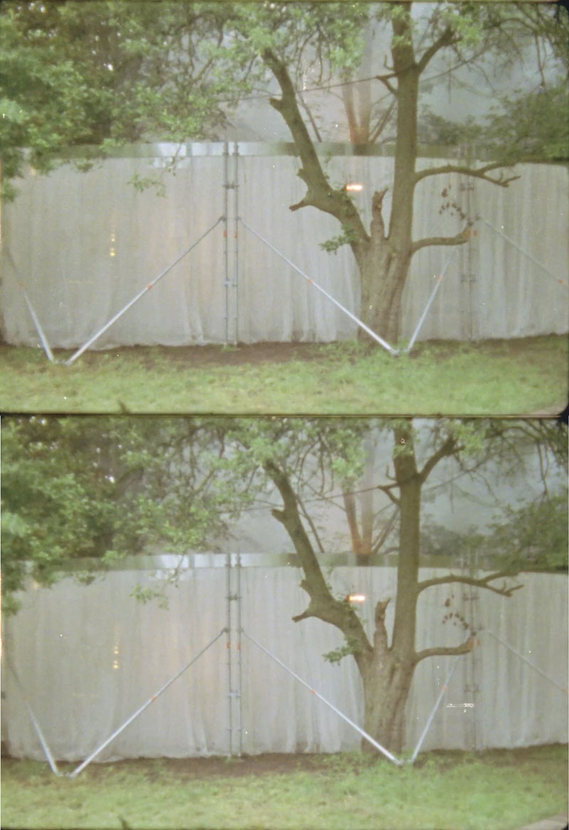 The facade of the Museum of Tireless Volcanos got sprayed with a “vinyl only” tag.